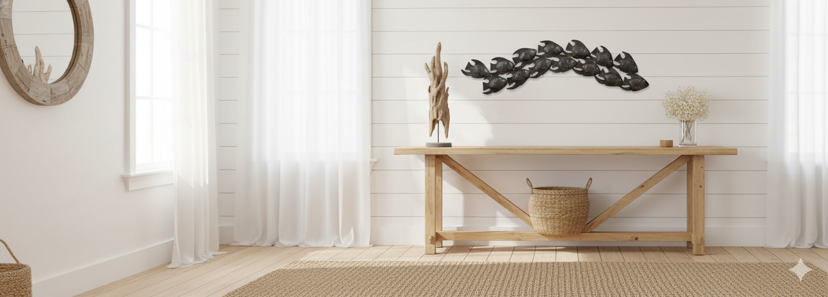 Recycled Metal Fish Wall Art, Haitian Handmade Decor (26x8).