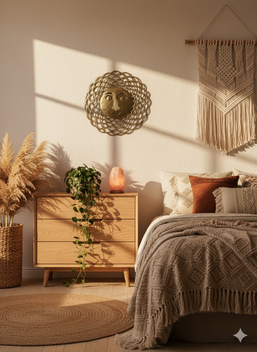 Haitian Handcrafted Metal Sun Face Wall Decor - Smiling Celestial Art.