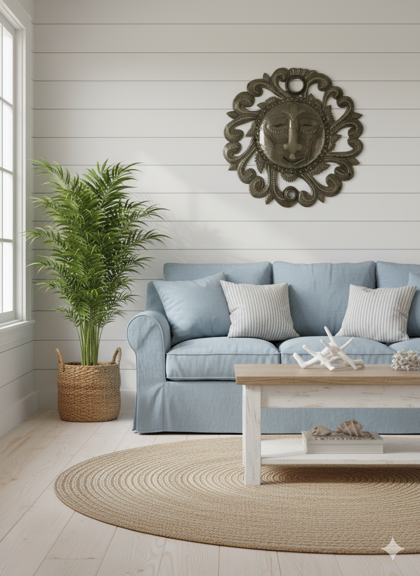 Haitian Metal Sun Face – Handcrafted Artisan Wall Sculpture.