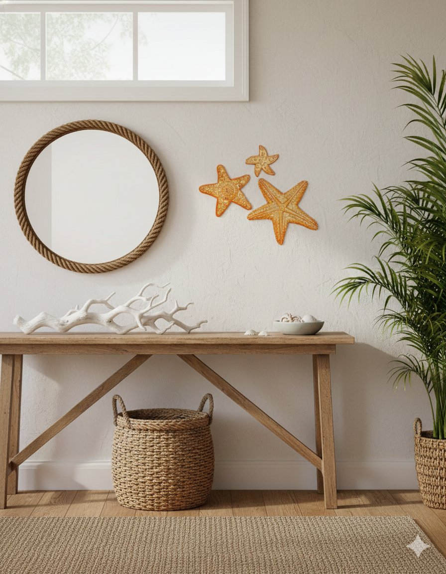 Handcrafted Painted Sea Star Wall Decor – Haitian Metal Art Set (Set of 3)